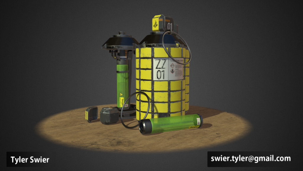 This Hyrdrochloric Acid Grenade was my first month of finals classes at Full Sail University. My instructors approved me to work on science fiction material from concept art.